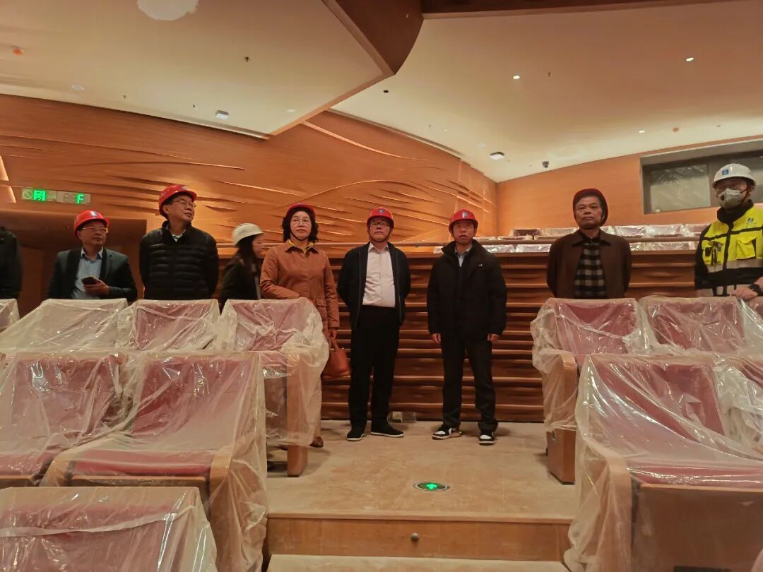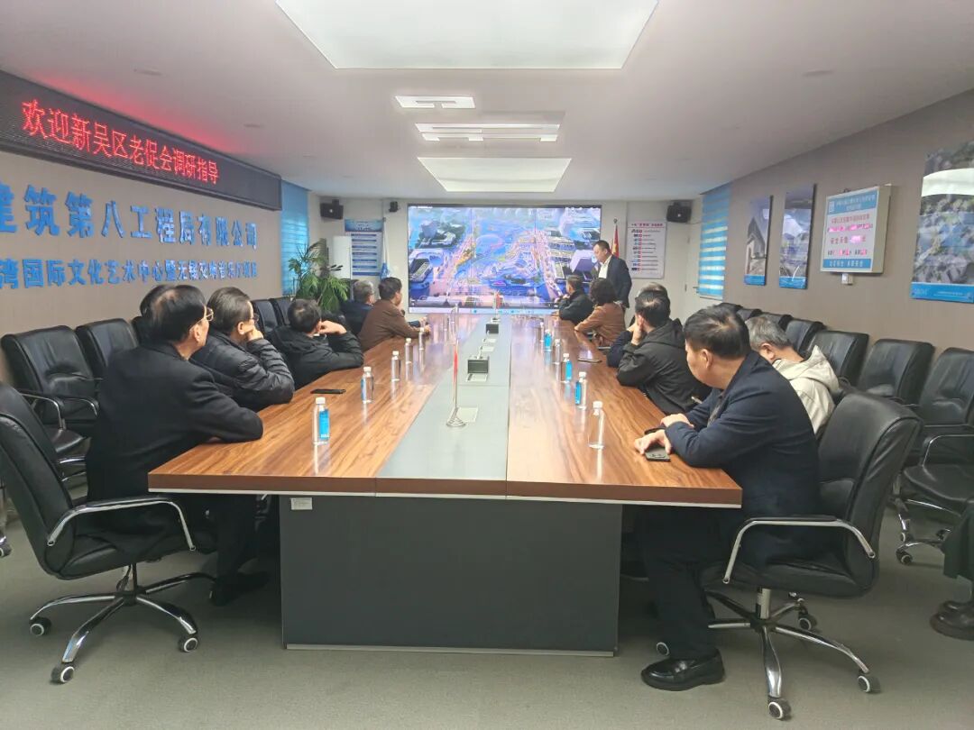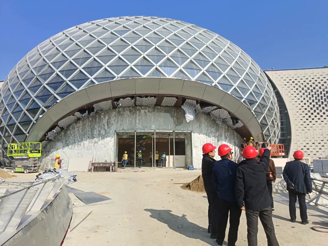 会议前,参会人员首先参观了无锡交响音乐厅。该音乐厅坐落于江苏省无锡市新吴区太湖湾科创城,总建筑面积约10万平方米,总投资约22.45亿元,涵盖1500座交响音乐厅、500座多功能演奏厅以及配套商业中心。其于2023年4月动工建设,2024年11月实现全面封顶,预计2025年12月中旬完成施工,计划于2026年元旦投入使用。周会长一行在听取了中建八局关于建设情况的介绍后,深入工地现场,被眼前热火朝天的建设景象所吸引。周青对交响音乐厅的建设进度和工程质量给予了充分肯定,并向奋战在建设一线的工程技术人员和全体施工人员致以问候。