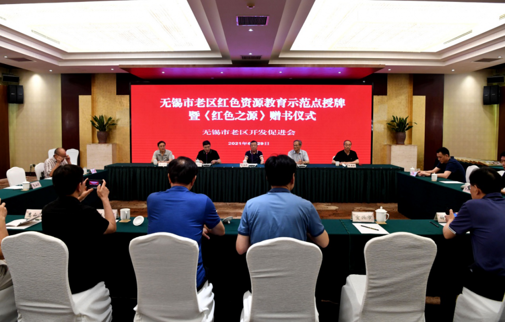 在全国上下欢庆伟大光荣正确的中国共产党华诞100周年的大喜日子里,6月29日上午,无锡市老区开发促进会在锡州花园大酒店三楼知音厅隆重举行无锡市红色资源教育示范点授牌暨《红色之源》赠书仪式。这是全市老促会系统在市委、市政府坚强领导和大力支持下,历时一年辛勤努力,奉献给中国共产党成立100周年的一份贺礼!在授牌赠书仪式上,市老促会对全市10家教育示范点单位授牌并向六家市(县)区老促会进行赠书,市老区开发促进会阙信芳理事长作了重要讲话。