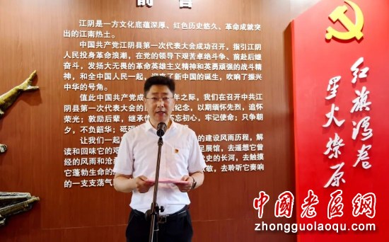 江阴市老区开发促进会遵循全国老区宣传工作会议精神,加大对红色资源宣传教育力度,对全市29处革命老区红色资源教育基地全面揭牌。7月12日上午,市老促会会长薛良及全体驻会领导、周庄镇党委书记顾春宇、镇党委副书记周翀、镇党委宣传委员蒋奕、老促会周庄分会会长何玉林参加了革命老区红色资源教育基地之一“中共江阴一大会址纪念馆”的揭牌仪式。